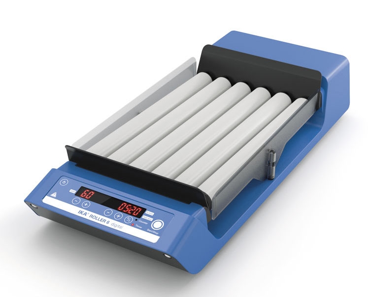 Agitatore a 6 rulli digitale, ideale per una miscelazione con azione simultanea rotatoria ed oscillatoria su rulli con velocità regolabile.