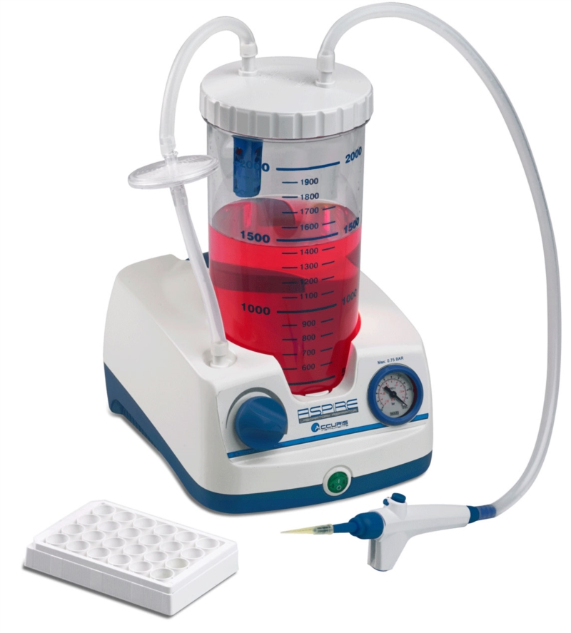 L'aspiratore di laboratorio ASPIRE è dotato di una pompa integrata silenziosa e priva di manutenzione, che determina la regolazione del vuoto in continuo con un manometro che permette la visualizzazione del valore di vuoto impostato e la portata di aspirazione.