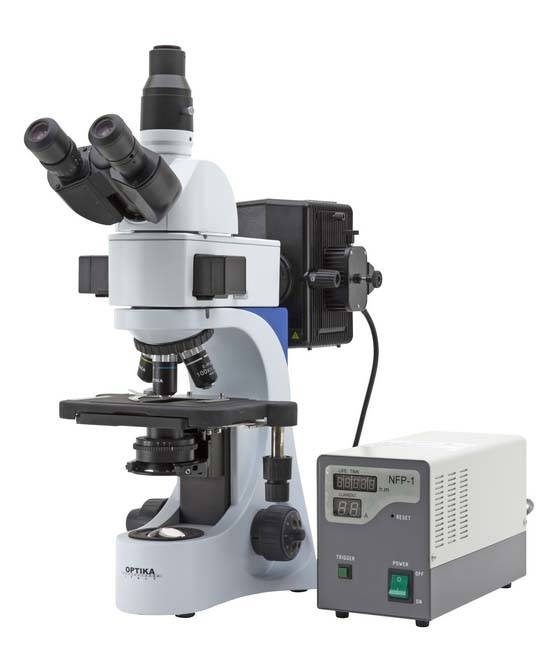 B-383FL Microscopio trinoculare a fluorescenza HBO filtri standard B&G.