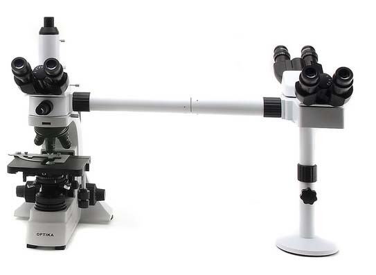 Microscopio trinoculare avanzato a luce polarizzata incidente e trasmessa.