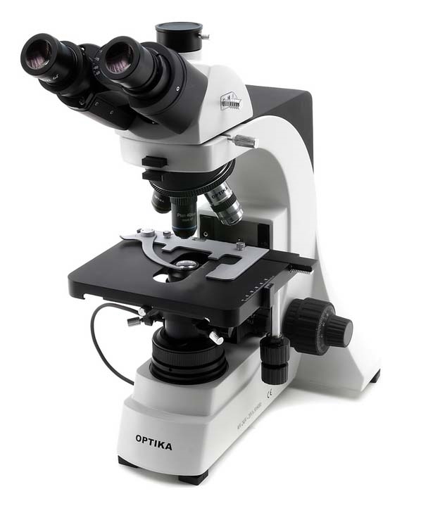Microscopio trinoculare a luce polarizzata.