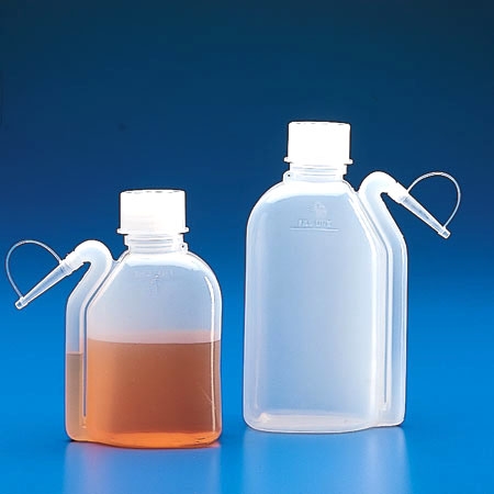 Modello con tubo stampato integralmente assieme alla bottiglia evitando così perdite dovute a imperfetta tenuta fra tappo e tubo. Tappo normalizzato intercambiabile con la serie di bottiglie 15801 - 1631. forma ovale che facilita l'impugnatura e ne aumenta la stabilità.