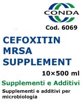 Aseptically reconstitute 1 vial with 5 ml of sterile distilled water. Mix gently until complete dissolution. Aseptically add to 500 ml of MRSA AGAR (Cat.1423) or to 500 ml of MRSA AGAR, MODIFIED CHROMOGENIC (1498) , autoclaved and cooled to 50 °C. Mix well and distribute into sterile containers.
