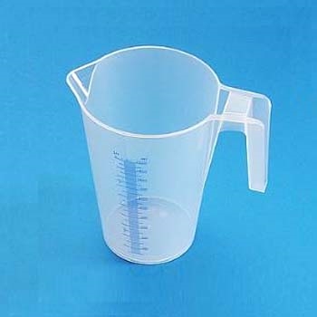Caraffa graduata in PP, forma conica, graduazioni di colore blu