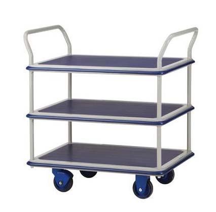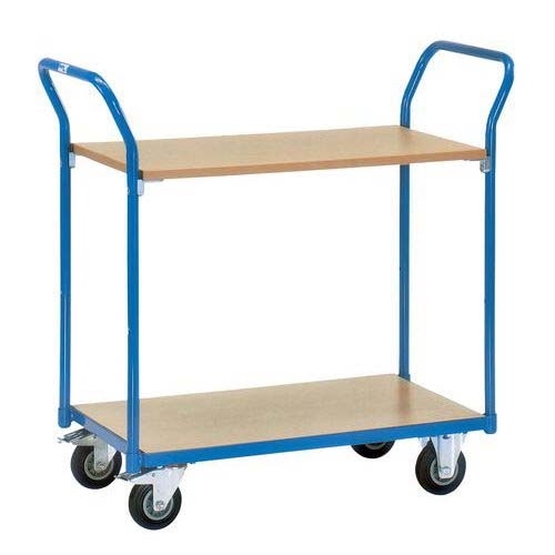 Carrello con ripiani in legno, Portata: 250 kg, Modello: Barra di spinta verticale, N. di piani: 2