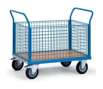 Carrello con rivestimento a griglia, Modello: 2 sponde + 2 sponde laterali, di cui 1 rimovibile, Portata: 500 kg