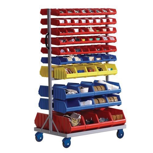 Carrello in acciaio inclinabile per contenitori, Portata: 200 kg, Modello: 3 telai + 3 contenitori, N. di contenitori: 3