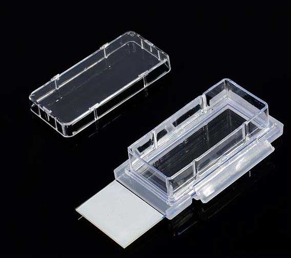 - Cell Culture Slide, 2 pozzetti, telaio in PS, glass slide, supporto in PP, 1.2~2.5ml, Sterile, Dnase&Rnase Free, Non-pyrogenic, confezione da 12 pz