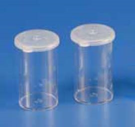 Contenitori per urine in polistirolo, capacità 150 ml, graduati fino a 125 ml, con tappo a pressione. Confezione non sterile.