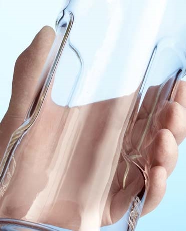 • Il corpo della bottiglia è stampato nel solido e ormai riconosciuto vetro borosilicato DURAN 3.3, vetro neutro in conformità con la farmacopea Type 1; il vetro DURAN offre la migliore resistenza chimica ed un'elevatissima resistenza termica