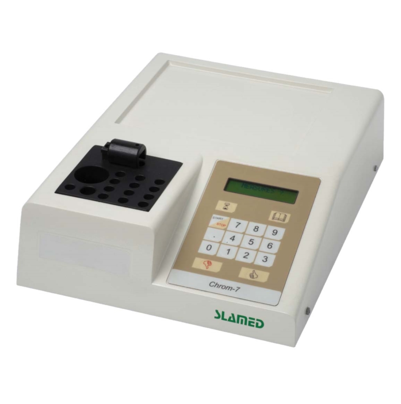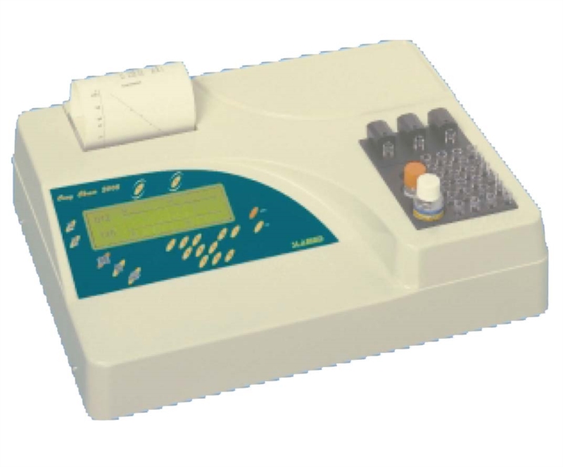The third channel is a colorimeter, used for the measurement of colorimetrical tests, wich are based on chromogenous substrata. Thus the K-3003 Chrom fits the demand of all coagulation tests in today's medical laboratories. As the internal memory can accept 55 individual programs, it's possible to use all kind of test kits available on the market.