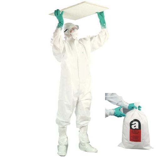 - 2 sacchi per recupero da 50 x 80 cm con marcatura a norma per l'amianto (per il confezionamento degli articoli dopo l'uso)