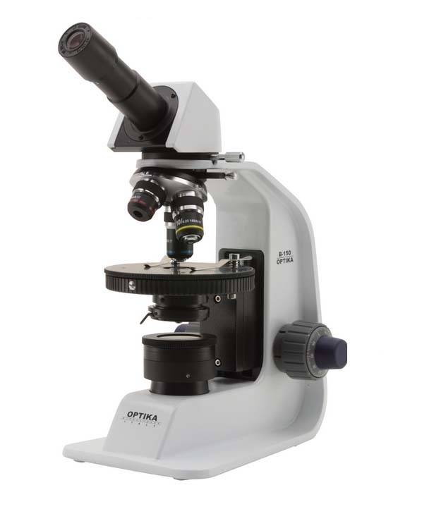 Microscopi progettati per semplici analisi in polarizzazione. Disponibile in versione monoculare e binoculare. I due modelli sono dotati di polarizzatore swing-out, analizzatore mobile e tavolino rotante. B-150POL-M e B-150POL-B sono adatti per un’osservazione semplice in luce polarizzata in campo didattico.