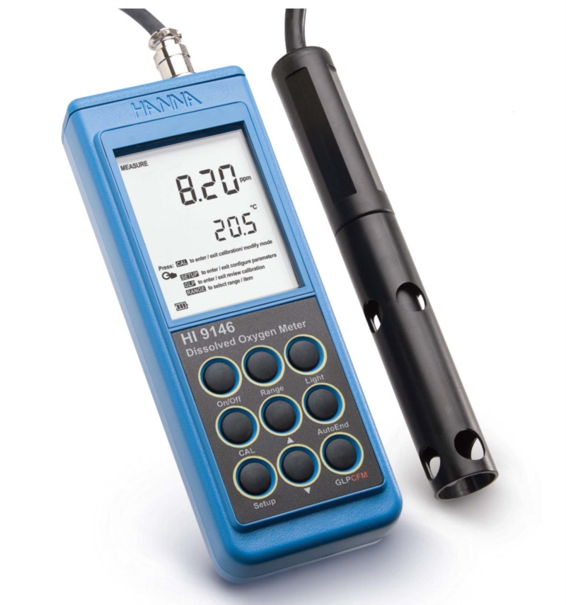 HI/9146 è un ossimetro a tenuta stagna, a microprocessore, dotato di calibrazione e compensazione della temperatura automatiche.