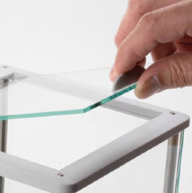 Nell’eventuale caso di rotture, le porte o i pannelli di sostituzione possono essere installati in pochi secondi. Una capottina protettiva offre un’ulteriore protezione contro i versamenti accidentali.