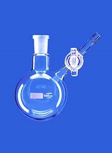 Pallone di Schlenk fondo tondo, capacità 100 ml, con rubinetto laterale maschio vetro, e cono superiore NS 29/32.