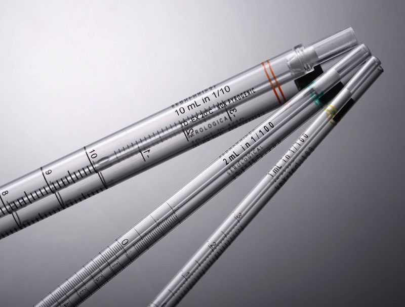Pipette sierologiche graduate, in polistirene (PS) di elevatissima qualità, capacità 25 ml, in confezione individuale sterile termosigillata "peel-to-open".