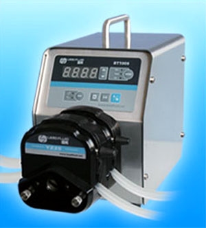 BT600S Basic Speed –Variable Peristaltic Pump flow range is 0.006-2300ml/min. Rotate speed is 0.1-350rpm.With basic functions such as reversible direction, start/stop, full speed (fast cleaning), adjust speed .Dispensing function can realize the repeat timing quantitative dispensing liquid .RS485 interface, as adopting the MODBUS communication protocol, the pump is easier to be connected with other equipments, such as computer ,human machine interface and PLC .