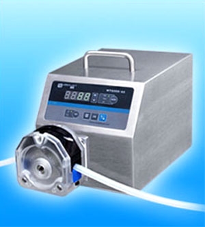 This pump adopts DC brushless motor drive which is large torque, free maintenance, can cascade four pump heads .Has basic functions such as reversible direction, start/stop, full speed (fast cleaning) and adjust speed. Control the start/stop, reversible direction, adjusts the speed via external analog quality, and adds the time dispensing function.RS485 interface, as adopting the MODBUS communication protocol, the pump is easier to be connected with other equipments, such as computer, human machines interface and PLC.