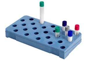 Supporto di grande capacità, da 24 posti di Ø 30 mm, autoclavabile fino a 121°C per 20 minuti.