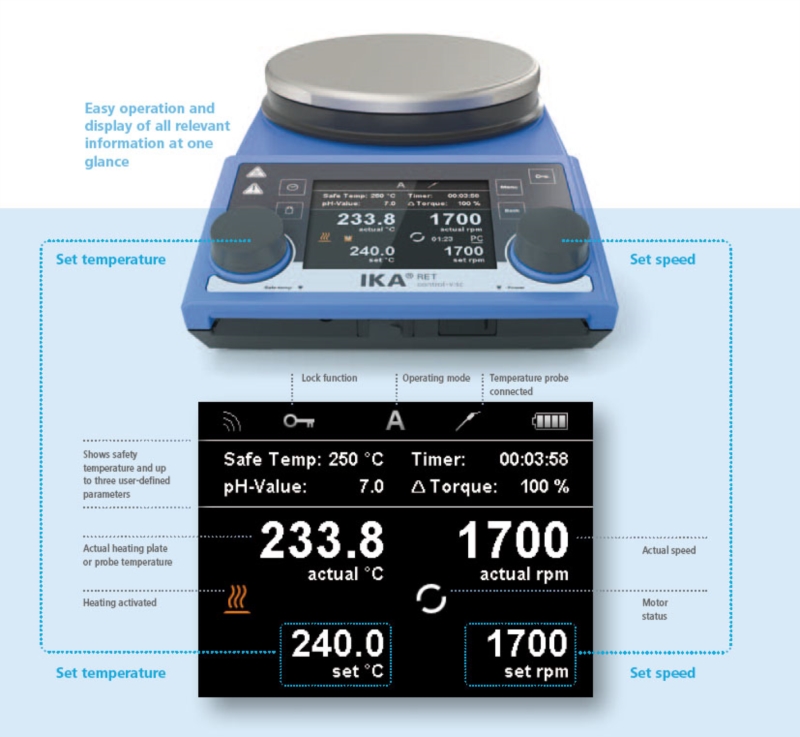 - Potenza: 650 W RET control/t IKAMAG® safety control New safety magnetic stirrer with heating, suitable for unsupervised operation.