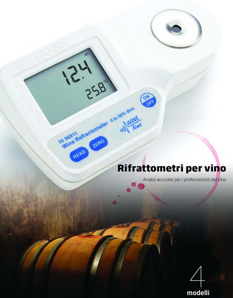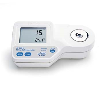 HI 96814 si basa sulla misura dell’indice di rifrazione per determinare il contenuto di zucchero negli acini d’uva o nei campioni di mosto sul campo o durante la lavorazione del vino.
