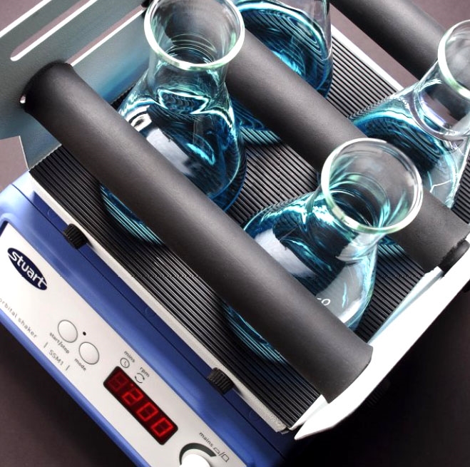 Il Mini shaker SSM1 è uno modello solido e compatto dotato di moto orbitale con un orbita di 16 mm. Fornito con un supporto dotato di tappetino antisdrucciolo ideale per le piastre multiwell e le capsule di Petri. Lo strumento può essere utilizzato in incubatori e camere climatiche in un range di esercizio fino a 40°C e con umidità relativa massima dell'80%. La dotazione comprende un supporto a barre regolabili per l'alloggio sicuro di contenitori a sviluppo verticale quali bottiglie, beute, beker etc. Tale dispositivo trasforma l'SSM1 in un vero e proprio minishaker per beute e bottiglie alloggiando le seguenti configurazioni: