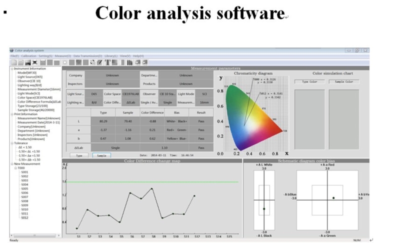 The colorimeter used in textile, printing and dyeing, clothing, footwear, leather, chemicals, plastics, plastics, pigments,paints, inks, printing, metal, photography, toys, etc. The color quality control, color control, color analysis, sample testing,production-line testing, is also suitable for injection molding, ink, paint, spraying auxiliary colors.