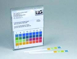 Per determinazione del valore di pH. Scatola da 100 strisce indicatrici pre-tagliate, di carta, lunghe 70mm.