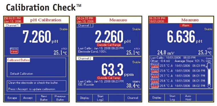 Calibration check™: controllo della condizione, del tempo di risposta dell elettrodo e delle soluzioni tampone in fase di calibrazione