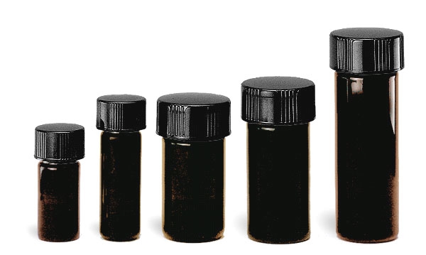 Vials in vetro borosilicato Tipo 1, bianco Wheaton 33® o giallo Wheaton “320”, con tappo a vite fenolico nero chiuso e sottotappo in stirene-butadiene bianco ricoperto di Teflon®, o con tappo a vite fenolico nero perforabile e setto in silicone ricoperto in Teflon®.