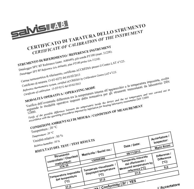 Certificato di calibrazione del costruttore su un punto